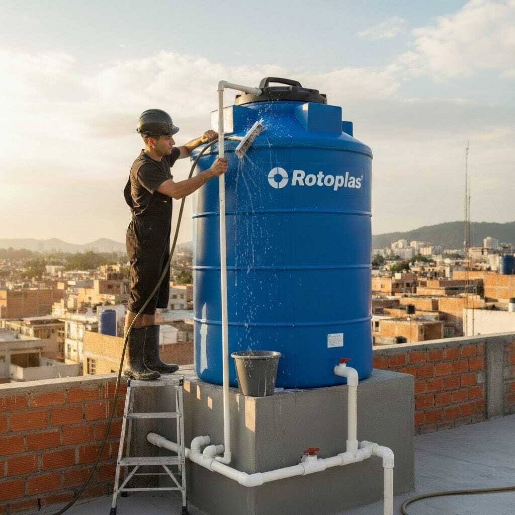 Lavamos y desinfectamos los tinacos manualmente: cortado ya alta presión